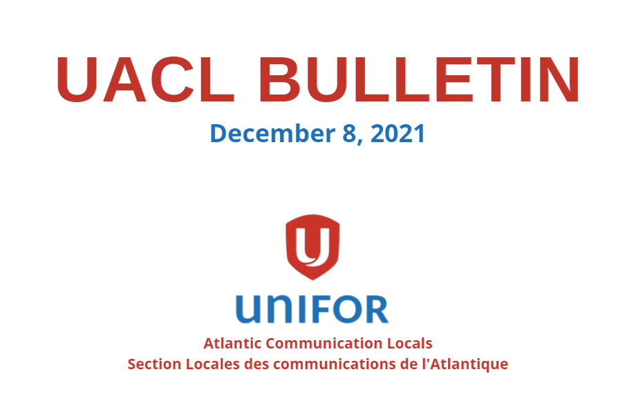 Unifor Atlantic Communication Locals Bulletin – Dec 8/21