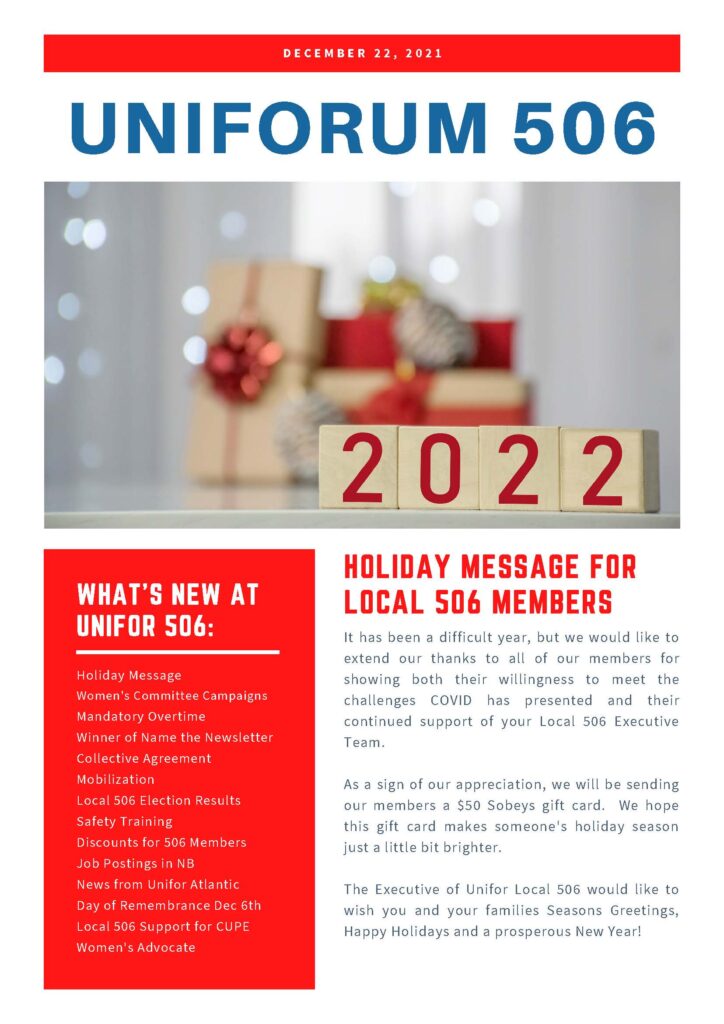 Local 506 Newsletter – Uniforum 506 Dec/21 Edition