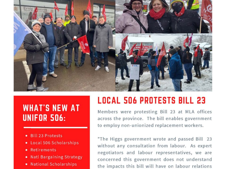 Click Here to View Newsletter in PDF Format Local 506 Protests Bill-23 Members were protesting Bill 23 at MLA offices across the province. The bill enables […]
