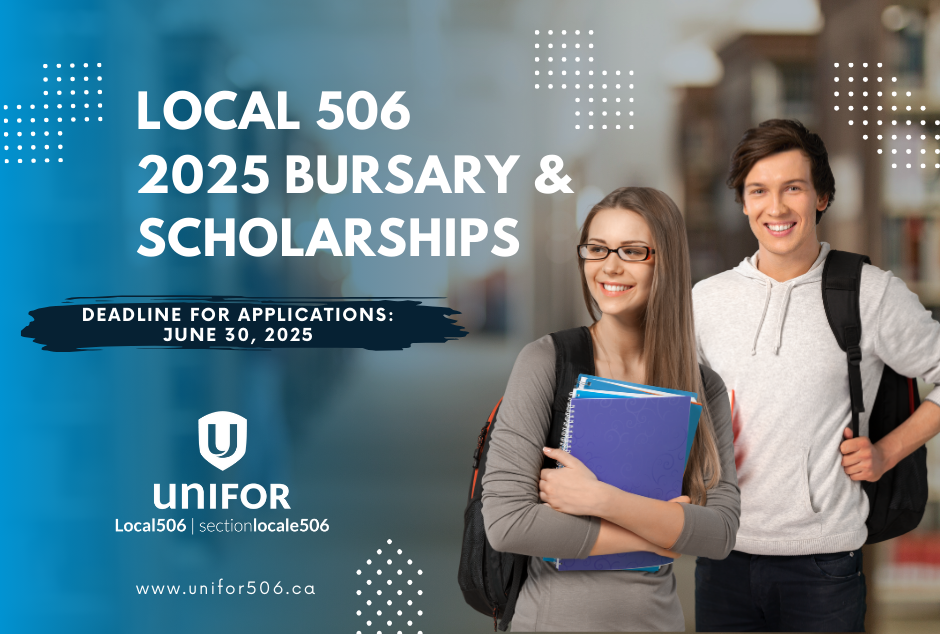 The following scholarships and bursaries are available to the children of Unifor Local 506 members. Sponsored by Unifor Local 506: Unifor Local 506 is now accepting […]